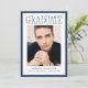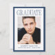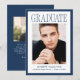 Mark this important milestone with this Modern Navy Frame Photo Graduation Announcement, featuring a classic navy border that adds depth and timeless appeal to the clean design. The word “Graduate” appears in refined serif lettering at the top, creating a strong focal point above the graduate’s vertical portrait. Their name, school, and graduation year are displayed below in a balanced and structured layout that keeps the focus on the achievement. The reverse side includes a horizontal photo and space for personalized text, making it ideal for sharing graduation party details, future plans, or a meaningful message to loved ones. Suitable for both high school and college graduates, this navy photo graduation card offers a polished and traditional way to celebrate this special accomplishment.
