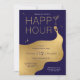 Create elegant Business Happy Hour invitations for your networking event, appreciation evening or corporate celebration using this navy blue and gold invite design. Featuring faux gold effects over a navy background with thin serif fonts, a cocktail glass replacing the 'Y' in 'Happy' and a bubbly bottle pouring away. This corporate event invite can be used for your Team-building / employee morale events, Networking meetings, Post-conference and seminar socials and more!