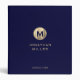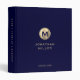 Modern Brushed Metallic Gold Monogram Medallion Classic Block Typography Initial Name Custom Text Home Office Work School Recipe Navy Blue 3 ring binder