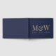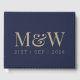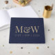 Modern Navy Gold Monogram Wedding Guestbook. A stylish modern typography design that is gorgeous and versatile. Shown in antique gold coloured text on dark navy blue. Customize with your Bride and Groom monogram initials and wedding date on the front cover, and names on the spine. We invite you to visit our Zazzle store, Austen & Grace, to view the full wedding suite, matching products and more. Please contact us if you require any assistance.