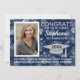 Modern Navy Grey Bokeh Bubbles Photo Graduation Invitation