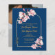 Elegant Navy Blue Magnolia Photo Back Wedding Invitation with Gold Arch .
