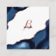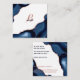 Modern Navy Rose Gold Agate Monogram Square Business Card