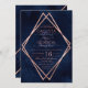 Modern Navy Rose Gold Geometric Border Wedding Invitation
