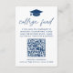 Celebrate your high school graduate’s achievement with this elegant college fund enclosure card featuring a navy graduation cap at the top and "College Fund" in modern navy script on a white background. Easily customize it with the graduate’s name, school name, graduation year, and personalized instructions. A convenient QR code allows friends and family to contribute effortlessly to their college fund. This stylish and practical design is the perfect addition to graduation announcements, party invitations, or thank-you cards.