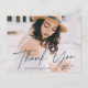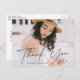 Modern photo graduation thank you postcard featuring the graduate's photo with "thank you" in a handwritten navy calligraphy script overlay. Personalize the front of the graduation thank you postcard by adding the graduate's name and graduation year. The photo thank you postcard reverses to display your return address and custom message.
