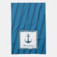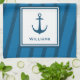 Modern Navy Striped Nautical Last Name Anchor Kitchen Towel