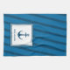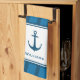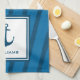 Add a nautical touch to your home decor with this modern navy blue striped anchor custom kitchen towel. Personalize with your family last name.
