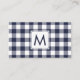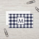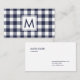 Modern Navy White Buffalo Plaid Pattern Monogram Business Card