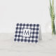 Modern Navy White Buffalo Plaid Pattern Monogram Note Card