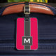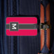 This modern and sleek personalized monogram luggage tag is perfect for the stylish and trendy individual. It's classic and cool design is perfect for any travelling plans. This design features a simple black, neon pinkish red, and white stripe and square framed monogram initial.