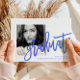 Modern Neon Blue Typography Photo Grad Party Invitation