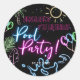 Modern Neon Glow Black Pool Party Birthday Classic Round Sticker