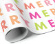 Add a fun pop of colour when wrapping your gifts this holiday with this modern and stylish wrapping paper, featuring a neon typography pattern spelling out "Merry"!