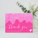Modern neon pink glitter drips order thank you card
