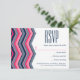 modern neon pink navy blue geometric chevron pattern wedding RSVP. pretty, modern, minimalistic and stylish geometric zigzags chevron pattern with navy blue, neon pink and pastel pink colour palette. Perfect for summer and spring wedding with a nautical wedding theme.
