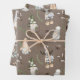A cute assortment of neutral wrapping paper sheets, featuring gnomes on a faux dark brown kraft paper background, in 3 different patterns. Contact designer for matching products. Copyright Anastasia Surridge for The Christmas Shop, all rights reserved.