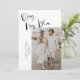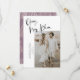 A unique way to announce your wedding day change of plans. This new save the date design features a modern calligraphy script along with your awesome photo. The back of the card features an iridescent rose-gold abstract pattern against a lavender background. You can easily customize your personal info of choice. Check out the background colour options in our: Okay, Change of Plans Collections