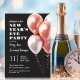 MODERN New Years Eve Rose Gold Balloons Black Invitation