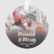 An elegant white script photo christmas ornament with the words, Married and Merry. Personalize it with your names, your wedding date, and a photo. Same design on front and back. Designed for you by Blackberry Boulevard.