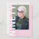 Modern 90th Birthday Invitation - Design features a pink background that can be changed to any colour, a portrait photograph, the 'NINETY' in bold white font and an elegant birthday party template that can easily be personalized. Stylish, trendy and perfect for any age!