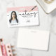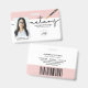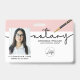 Modern photo Notary business badge features single photo, typography script ''notary'', logo, your name and title on the front. Personalize further with your contact details, and bar code on the back.