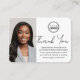 Express gratitude to clients with personalized thank you business cards! A perfect way to show your appreciation and invite future collaborations. This modern design showcases your photo, along with elegant script lettering. A double-sided template, customized with your logo, a personal message, your credentials, and a QR code. Include a friendly note encouraging customers to link to a review site and leave feedback. Ideal for a Notary Public, Loan Signing Agent, Certified Notary Trust Delivery Agent, CNTDA, Mobile Notary, Apostille Service or other legal profession. Printed colours: gold, black and white. Shop the online collection for more popular product ideas and supplies, designed for notaries!
