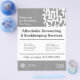 This professionally designed flyer template perfectly coordinates with the matching business cards and stationery for an elevated esthetic for your accounting or financial services business. An abstract circle of numbers creates a unique logo and brand identity for your business. Customize the fields with your own promotion or offering. Logo design and layout by 1201AM Design Studio. © 1201AM