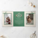 Add a whimsical touch to your holiday greetings with our bold and modern Nutcracker Christmas Photo Tri-Fold Holiday Card, featuring original hand-drawn illustrations by ©Moodthology Papery. Your favourite photo is framed by a striking green and pink striped ribbon and surrounded by charming nutcrackers, drums, geometric trees, violins, and festive florals. The cheerful message “Joyous Holiday” and vibrant colour palette—deep green, red, golden yellow, mint, violet, and soft pink—bring a fresh, artistic energy to your seasonal traditions. Personalize with your family name and year. The inside continues the festive theme ribbons frame design to display two photos in the inside and an additonal third photo on the inside flap for a cohesive, joyful finish. Hand-drawn design by ©Moodthology Papery