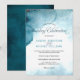 Modern ocean blue / turquoise ombre watercolor wedding invitation card with golden glitter / confetti