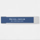 Custom, personalized, professional, modern, classy, stylish, elegant, long size, business office cabin silver colour finish classic navy blue and white script / typography, wall or door hanging metal sign name plate. To customize, simply type in your full name and designation / title. While you personalize, you'll be able to see a preview throughout. Perfect for small business, office, consultants, entrepreneurs, business owners. Makes a great gift for employees, staff, managers, accountants, attorneys, real estate sales agents, lawyers, auditors, brokers, realtors, executives, corporate professionals, teachers.