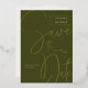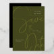 Modern Typographic Olive Green Calligraphy Save the Date Foil Invitation with a foil pressed frame around the couple's names. All colours can be changed using the design tool.