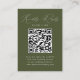 Make it easy for guests to RSVP to your wedding or event with these modern wedding RSVP cards with QR code. The elegant wedding enclosure cards display "Kindly Reply" in a white modern script with an olive green background. Personalize the card with your RSVP date, wedding website, and instructions for guests using the text templates provided. The back of the card provides space for additional text and/or photos. Designed to coordinate with our Modern Elegance wedding collection.