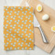 Modern Orange and White Leaf Pattern Kitchen Towel