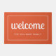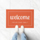 Modern Orange and White Personalized Welcome Doormat. Bold typography.