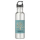 Personalized water bottle with a muted green background layered over top is a light yellow tree with 2 orange bird silhouettes sitting on the branches.