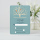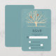 RSVP card with a muted green background layered over top is a light yellow tree with 2 orange bird silhouettes sitting on the branches.