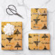 Modern Orange Black Christmas Tree Pattern Holiday Wrapping Paper Sheets. A modern and simple black Christmas tree pattern on an orange background with a Merry Christmas text.
