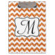 Modern Orange Chevron Monogram Initial Clip Board