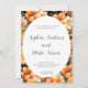 What makes this invitation truly unique is the intricate border surrounding the oval. The border is filled with a variety of flowers and greenery in shades of white and orange. The combination of the two colours creates a warm and inviting ambiance, perfect for a fall wedding. The floral design is inspired by a beautiful garden in full bloom, bringing a touch of nature and serenity to your invitation.