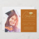 Send your family and friends a unique personalized photo college graduation card to wow them. This template design features your custom photo on the left and to the right a faux gold grad cap sitting on the word "Graduate" written in a hand lettered faux gold script typography. Personalize your class year, name, degree and other ceremony details on an orange background. Designed by Susan Coffey.
