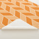 This cozy sherpa blanket features a trendy geometric herringbone pattern in peach, orange, and white.
