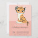Modern, stylish, elegant pink pastel orange tiger birthday invitation. Available with a panda as well. Perfect to set the stage for any little girl's birthday party! For more designs by Sarah Maiga, go to www.maigadesigns.com
