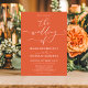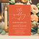 Invite your guests to celebrate your special day with this chic, modern wedding invitation. The vibrant Verona Sunset orange background creates a warm and inviting atmosphere. Elegant calligraphy combined with a clean sans-serif font adds a touch of sophistication. Customize with your wedding details.