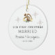 Modern Our First Christmas Married Photo Ceramic Ornament