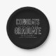 Modern outline typography bold type in white, personalized graduation party plate. Background colour shown in classic black can be customized.