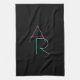 Modern Overlapping Initials | Pink Turquoise Black Kitchen Towel