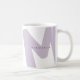 Add a touch of softness and style to your daily routine with this personalized lavender monogram mug. Featuring a large, abstract initial in a muted lavender shade and a modern sans-serif name overlay, this mug is designed to stand out with understated elegance. The contemporary design is perfect for those who love clean aesthetics with a subtle pop of personality. Whether you're treating yourself or searching for the perfect birthday, Christmas, or Secret Santa gift, this mug is an excellent choice for friends, family, coworkers, or teachers. It's fully customizable—add any name and matching initial to create a one-of-a-kind keepsake that feels thoughtful and useful. It’s great for hot coffee, tea, or cocoa, and makes a stylish addition to any kitchen or office. Ideal for gifting or daily use, it’s a simple way to bring charm to someone’s day.