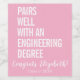 Cheers to you, engineering graduate! We’re toasting your impressive achievement with a special bottle of wine featuring a personalized, witty label. The design boasts a sophisticated, blush pink background with bold white text that reads, "Pairs Well With an Engineering Degree." Below, "Congrats, [Name]!" is elegantly scripted in calligraphy, while "Class of 2024" is displayed in sleek, white block letters at the bottom. This customizable label template lets you adjust the design to perfectly fit the occasion. Celebrate their outstanding accomplishment with this unique and memorable wine label!
