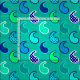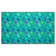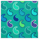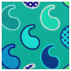 Fabric in a minimalist, modern paisley pattern, outlined accented with dots - shades of turquoise, aqua, cobalt blue, and lime green, on a soft turquoise / peacock background